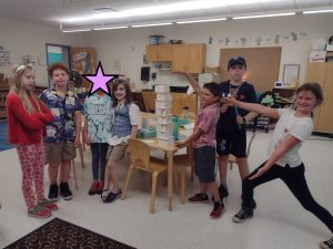 We had a wonderful first day of school! Here is the class with the winning STEM challenge. They built castles out of index cards that were at least two feet tall, to look like a square from a bird’s eye view, without tape or staples, and without talking to their teammates! They did splendidly!