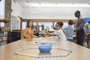At their first go, many teams had a hard time getting close to the targets—their catapults were either not powerful enough or not accurate enough. They were encouraged to go back to their tables, tweak their designs, and get back to the launch table to try again. After some reworking, several launches got very close and even landed in the targets! Others weren’t as lucky—some ducks got lost in the floor, hit innocent bystanders (including the cameraman), and even landed in the cafeteria approximately 20ft away! No matter what the outcome, everyone had a lot of fun just trying.