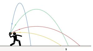 Projectile motion infographic shown by Kieron during his presentation, demonstrating how the angle at which an object is launched affects the distance it travels.