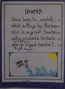 A limerick poem from the 1st and 2nd grade to Shira.