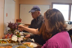 Stephen Haff, Amanda Thorndike, and Shira Teich make their plates.